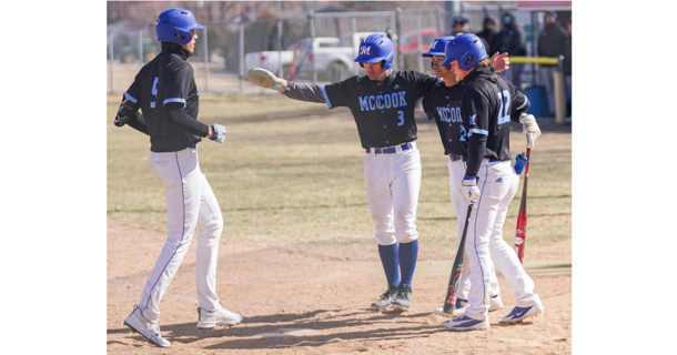 The McCook Community College baseball team swept their third straight home doubleheader this week and improved to 9-1 on the season, sweeping the four-game series with Dawson Community College. MCC won 21-1 in the first game Monday and held on for an 11-8 win in the second game. The Indians swatted six home runs.